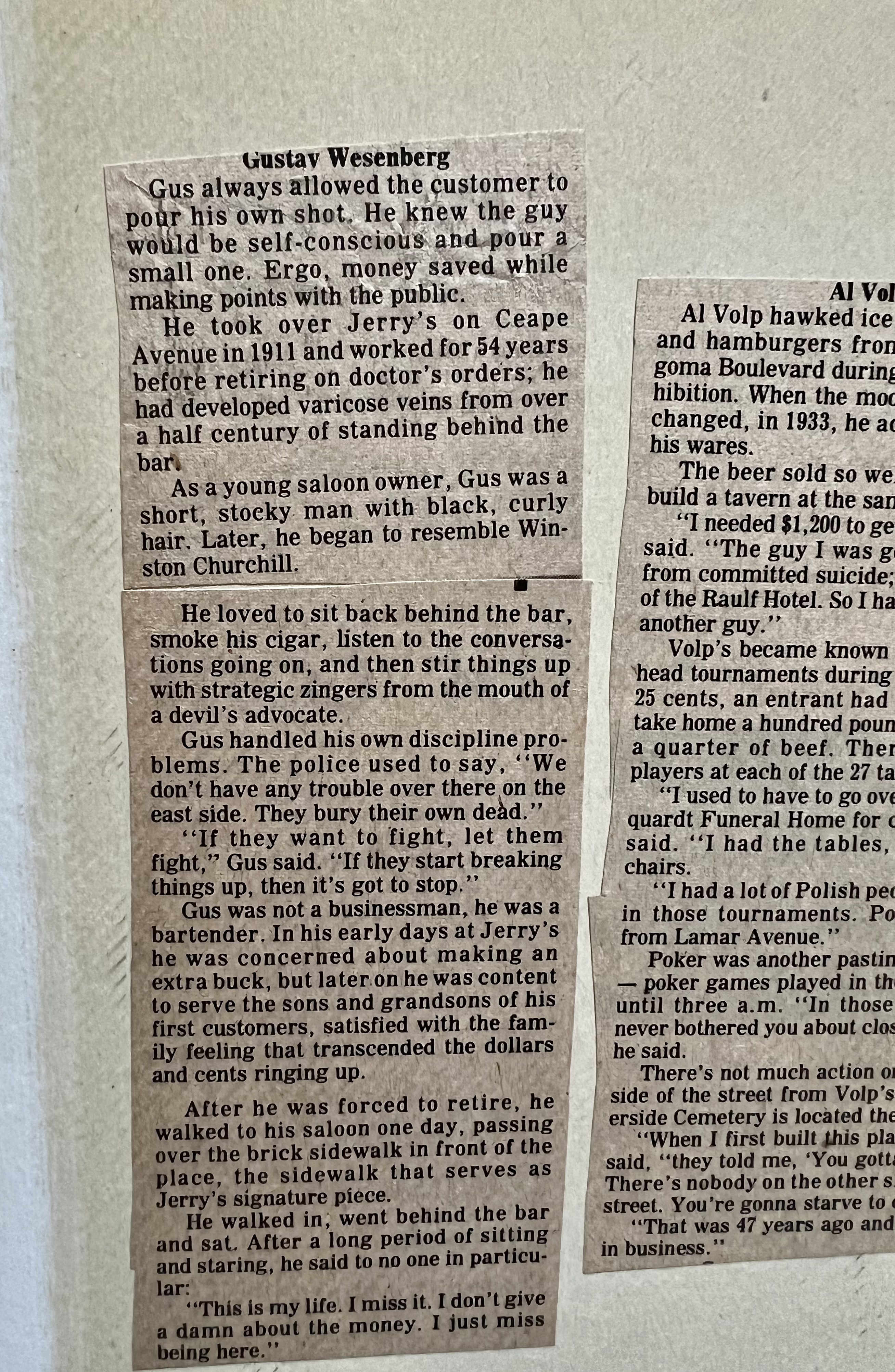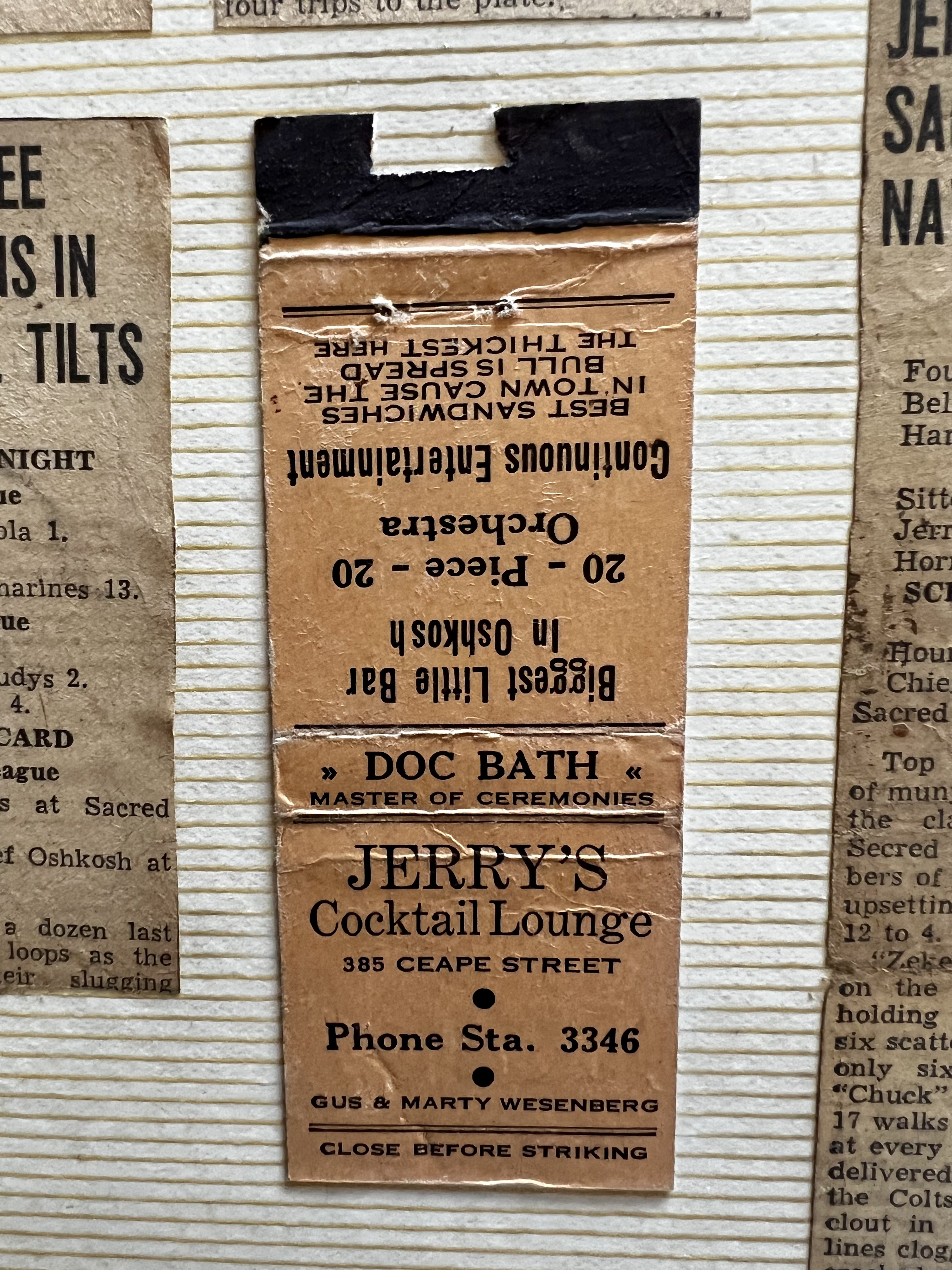 1911: Jerry’s was purchased by Gus Wesenberg (nickname “Jerry”), a local Oshkosh-ian who was best friends with Charlie Rahr (owner of Rahr’s Brewery) just down the road from Jerry’s. Charlie gave Gus the push to get started and Jerry’s Tavern was officially born!